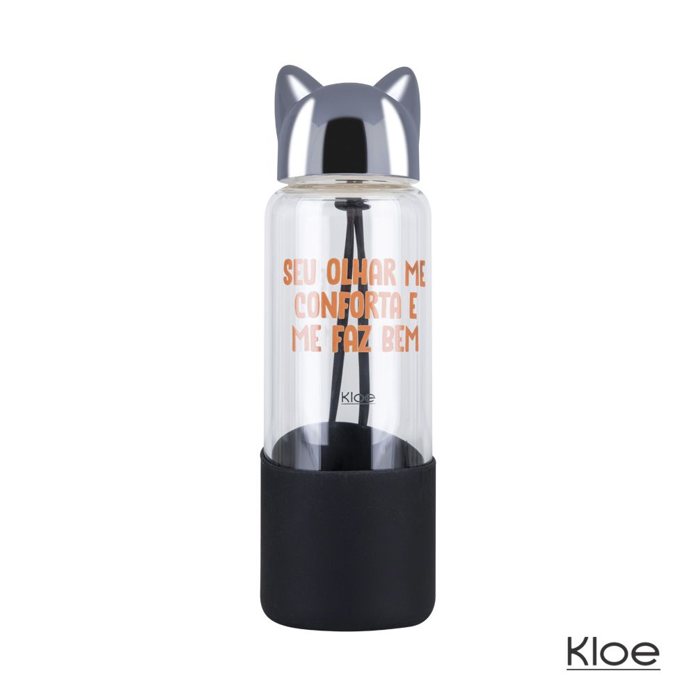 A garrafa possui capacidade para 375 ml e tampa com orelhinhas de gato com tom metalizado, o que a torna supercharmosa e diferenciada.